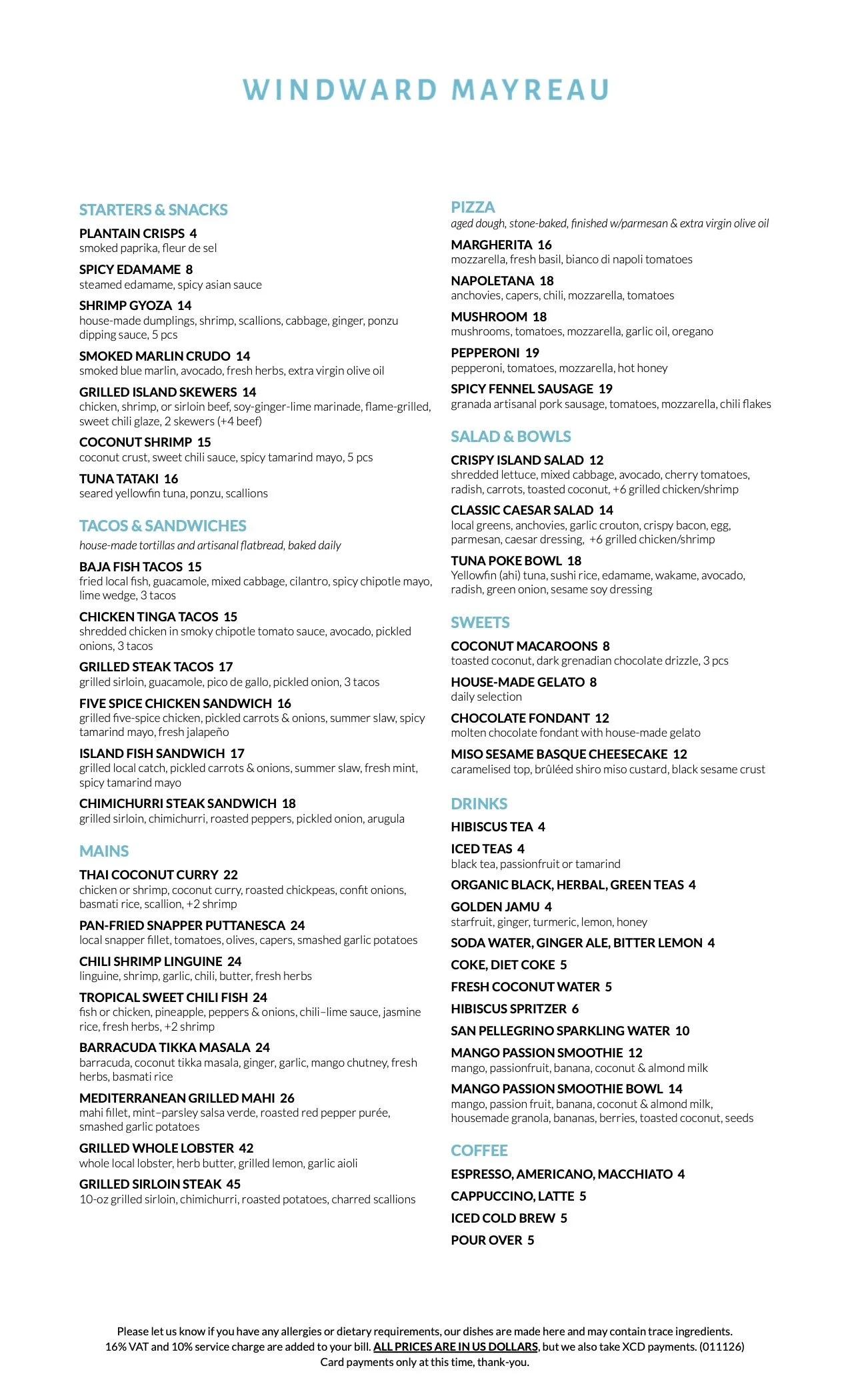 Windward Mayreau’s Restaurant is all about relaxed beachfront dining — panoramic ocean views, warm trade winds, and vibrant, globally inspired flavors. Our menu features artisan pizzas, tacos, flatbread sandwiches, fresh local seafood, crisp salads, and shareable small plates, designed for long lunches, sunset cocktails, and easy island nights.